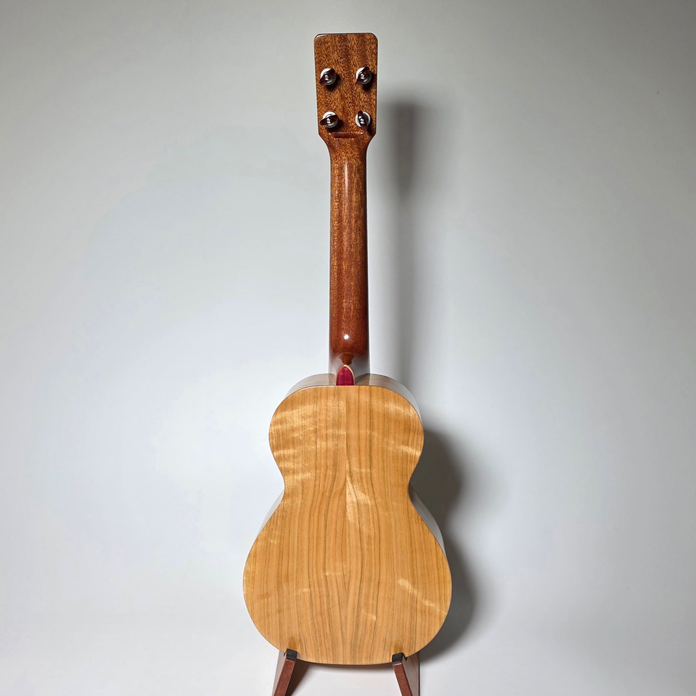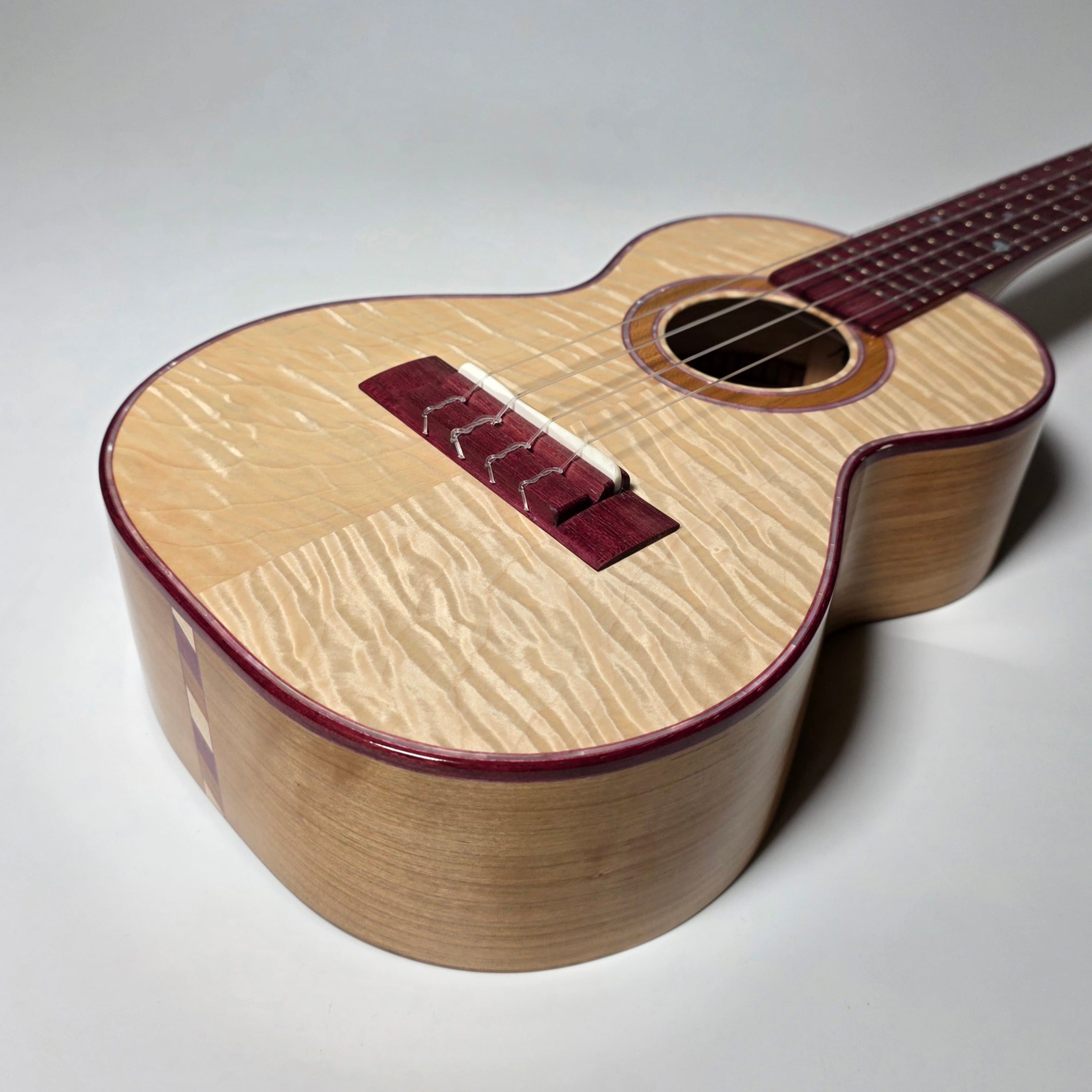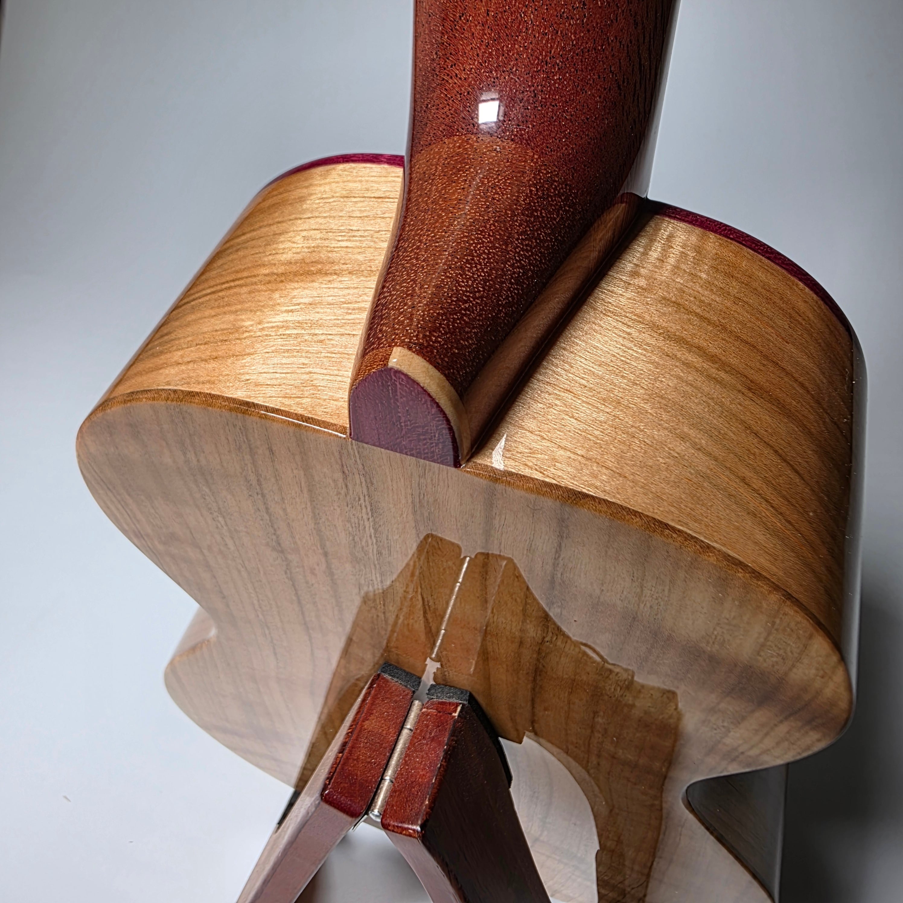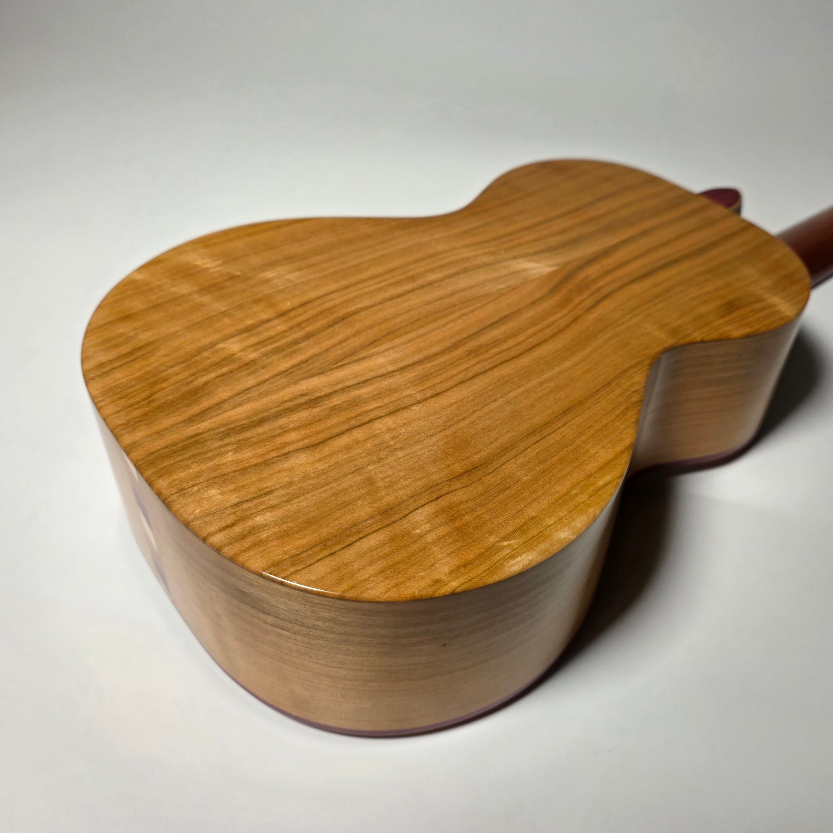 トップには杢目の美しいトチ、サイド&バックには温かみのある山桜を使用。指板とブリッジには深い色合いのパープルハートを組み合わせた、可愛らしさと上品さを兼ね備えた1本です。